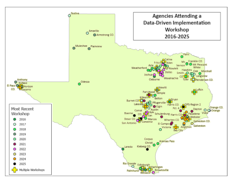 The Agency Strategic Planning Workshops are presented to on site at the requesting agencies and are intended to assist the agency with developing an effective data driven operational model to reduce crashes, crimes and other social harms within the respective community. As part of the project, the agency will also receive one-on-one remote and on-site analytical training/support to the extent needed. All at no cost. Additionally, the nationally certified training is pre-approved for 8-hours of TCOLE credit.